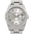 - 1945年にリリースされ、今やロレックスの顔とも言える「デイトジャスト」は、金属塊から削りだした防水性の高いオイスターケース、午前0時頃瞬時に日付けが変わるデイトジャスト機構、全回転式ローターを搭載したパーペチュアル機構と、ロレックス三大機構を搭載したモデルです。すっきりとしたフォルムのラウンドケースとホワイトゴールドを採用したフルーテッドベゼルが現代的でスタイリッシュな印象を与えています。