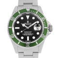 - ロレックスのスタンダードダイバーズウォッチ“サブマリーナ”。その歴史は1953年に始まり、今なお人気の衰えぬ定番モデルです。今回入荷のRef.16610LVは、2003年にサブマリーナ誕生50年を記念してバーゼルで発表されたモデルで、ベゼルの鮮やかな緑から「グリーンサブ」の俗称で呼ばれています。2010年にグリーンサブ(Ref.116610LV)が登場してリニューアルされたため、その製造期間の短さからコレクター垂涎アイテムの一つとなっています。
