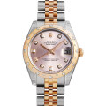 - 1945年にリリースされ、今やロレックスの顔とも言えるデイトジャスト。こちらはローズゴールドとステンレスのコンビモデルで、美しい曲線のベゼルと10ポイントのダイヤモンドがインデックスとしてセッティングされた、高級感あふれる華やかなデザインに仕上がっています。