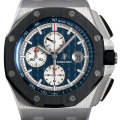 - オーデマピゲを代表し、ラグジュアリースポーツウォッチの代名詞とも言える「ロイヤルオーク」。多くの人気モデルを産み出してきたジェラルド・ジェンタ氏によりデザインされ、1972年のファーストモデルから高い人気を誇るスポーツウォッチです。イギリス海軍の戦艦「ロイヤルオーク」をモチーフにした八角形ベゼルと六角形ネジは、一目でそれと分かる独特のデザインです。こちらは、プラチナケースにCal.3126を搭載した、ダイアルとアリゲーターストラップのブルーが印象的なモデルです。