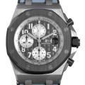 - “ロイヤルオーク”はラグジュアリー・スポーツウォッチとして1972年に発表され、今やオーデマ・ピゲの顔として高い人気を誇る代表作です。こちらは存在感のあるダイナミックなオフショアクロノモデル。クロノグラフとデイト表示を備え、機能性にも優れた非常に人気の品となっております。ストレートグレーのダイアルに、ライトグレーとダークグレーのコンビのラバーベルトと、モノクロームを極めたモデルです。ムーブメントには自動巻きCal.3126/3840を搭載。パワーリザーブ50時間。100m防水。