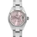 - 1945年に誕生し、今やロレックスの顔とも言える"デイトジャスト"。金属塊から削りだした防水性の高いオイスターケース、午前0時頃瞬時に日付けが変わるデイトジャスト機構、全回転式ローターを搭載したパーペチュアル機構と、ロレックス三大機構を搭載したモデルです。こちらは2017年に発表された"279174G"。人気のピンクが採用され、26mmから28mmへサイズ径がボリュームアップしていることが特徴となっています。