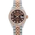 - レディース ロレックスの定番モデルとも言える"デイトジャスト"。こちらはステンレススティールとエバーローズゴールドのコンビとなり、ベゼルとインデックスに配されたダイヤモンドの煌きが美しいモデルです。9時のみ豪華なローマンインデックスとなっており、インデックスダイヤを留める爪が星型なのもチャーミングです。ムーブメントはパワーリザーブ55時間対応の自動巻きCal.2236を搭載。