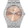 - ロイヤル”コレクションは、スポーティーかつラグジュアリーな時計でありながら、優れたコストパフォーマンスをも発揮しています。こちらは2020年発表モデルです。一体型の5列リンクメタルブレスレットの表面と角の滑らかな質感は、手首に装着したときのフィット感を確かなものにしています。ベゼルは表面のポリッシュと溝の彫りが交互に施されたノッチ入りデザインが個性的です。