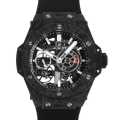 - 2025年に登場したモデル「ビッグ・バン メカ-10 フロステッドカーボン」です。こちらは、ウブロの革新的な素材使いとメカニカルな美学を融合させた1本です。ケースとベゼルには、フロステッドカーボンという特殊なカーボン素材が使われており、軽量かつ高耐久で、独特の質感と模様が魅力です。非常に個性的かつ高性能なタイムピースです。