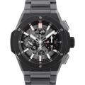 - 時計業界にまさに「ビッグバン」を起こした名作誕生から15周年、新型モデルがリリースされました。ビッグバンと言えばラバーベルトの印象が強いかもしれませんが、こちらはブレスレットとケースを一体化させたインテグラル―完成された―仕様。近年トレンドの一つとなっているラグジュアリー・スポーツウォッチを彷彿とさせる佇まいです。ケースはポリッシュ&サテン仕上げが巧みに組み合わされたブラックセラミック仕様。搭載するムーブメントはウブロ渾身のマニュファクチュールキャリバーHUB1280、その名もウニコ。他のビッグバン ウニコ同様にスケルトナイズされた文字盤からは、その美しい仕上がりを鑑賞することが可能です。パワーリザーブは72時間。100m防水。2021年新作。
