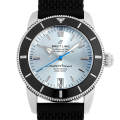 - こちらは1950年代の初代スーパーオーシャンにインスパイアされて生まれたモデルで、クラシカルの中にモダンなデザインを合わせた時計です。日本限定の200本限定のモデルで、爽やかなアイスブルーの文字盤が特徴的です。