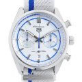 - 1963年に誕生したタグ・ホイヤーのアイコン「カレラ」。こちらは車メーカーポルシェとの2度目のコラボレーションモデルで、ポルシェ911 カレラ RS 2.7 の50周年を記念して製造されました。「カレラ キャリバー ホイヤー02 クロノグラフ」は、新機軸となる自社開発・製造ムーブメント「ホイヤー 02」を搭載しています。パワーリザーブ約80時間。