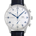 - 1930年代、ポルトガルの商人がオーダーメイドした時計を原形として製造が開始された“ポルトギーゼ”。スッキリとしたシルバー文字盤に、ブルーの針とアラビアインデックスがキレイなモデルです。ムーブメントには同社の高い技術力が生み出した毎時28,800振動のCal.69355を搭載しています。3気圧防水。パワーリザーブ46時間。両開きDバックルを搭載した2019年発表モデルです。