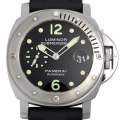 - パネライのロングセラーモデル「PAM00024 ルミノール サブマーシブル」。現行モデルの中で唯一、回転ベゼルを備えた時計です。サテン仕上げとポリッシュ仕上げを巧みに使い分けたケースは、美しいだけではなく、時間の読み取りの妨げにならないよう工夫されています。ムーブメントにはクロノメーターを取得した機械式自動巻きムーブメント「OP III」を搭載しています。
