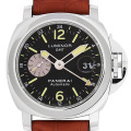 - 過酷な軍事環境での使用を念頭に置き、いかなる条件のもとでも高い性能を発揮する腕時計として 設計された“ルミノール”。9時位置にスモールセコンド、3時位置にデイト表示を配置。針とインデックスに蛍光塗料を使用しているため 薄暗い中でもしっかり時間が読み取れます。GMT機能搭載モデルですので海外旅行に行った時など現地時間、日本時間の二つを表示することが可能です。