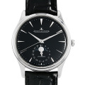 - 「マスターウルトラスリム」シリーズの2021年新作を入荷致しました。前作に比べ、ケースの厚みが6mm薄くなり、大きくなった日付の円周と、インデックスを長くすることにより視認性が向上しました。立体的になったロゴや、ムーンフェイズの星がよりリアルになる等、細かなディティールも変更されたことによって、実用性も高まり全体的にシャープでスタイリッシュな印象にアップデートされています。シリーズの特徴である無駄のない洗練されたデザインが機能美を際立たせています。新世代ジャガー・ルクルト製キャリバー925搭載。パワーリザーブ約70時間。