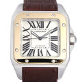 - “サントス・ドゥ・カルティエ”の誕生100周年を記念して創られたアニバーサリーシリーズ“サントス100”。清潔感あるシルバーダイヤルにブラウンレザーストラップを組み合わせたカルティエらしい上品なデザインは、フォーマル/カジュアルを問わず様々なシーンに対応出来ます。