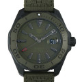 - 2017年 タグ・ホイヤー新作「アクアレーサー キャリバー5」を入荷しました。軽量なチタン製ケースとカーキのダイアルがトレンドのミリタリーテイストにマッチ。ベルトには文字盤と同じくカーキのNATOストラップが採用されています。骨太になりがちなミリタリー調のデザインには珍しく薄型設計になっているため、様々なシーンで活躍できる1本です。300m防水。