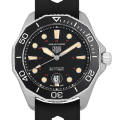- タグ・ホイヤー初の ダイバーズウォッチとして発売したアイコニックなRef.844をオマージュしたモデルです。キャリバー5を搭載したダイバーズウォッチ、“アクアレーサー プロフェッショナル 300”が入荷致しました。セラミック製の逆回転防止型ベゼル、ねじ込み式リューズ、300m防水、潜水中に最適な視認性を得るためのインデックスと針の幅広夜光マーカーなど、過酷な状況下にも耐えうるダイバーズウォッチです。