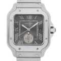 - ルイ・カルティエが飛行家アルベルト・サントス・デュモンの要請を受けて製造した腕時計サントス。こちらはそのサントスのデュアルタイム機能を搭載した2024年発表モデルとなります。クイックスイッチインターチェンジャブルという、付属の替ベルトへの交換を容易にしたシステムを引き続き採用しています。ケースサイズ40mmのラージサイズです。防水性能10気圧を備えています。