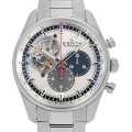 - エル・プリメロが誕生した1969年当時のモデルと、人気のオープンを組み合わせたモデルです。メンズとしては標準的なサイズで扱いやすい42mm径。サンレイ・ギョーシェ仕上げのシルバーダイアルに、ブルーとグレーのインダイアルの組み合わせが「新生ゼニスは回帰でもある」と強く思い出させるモデルです。