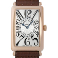 - 落ち着いたデザインで人気の高い「ロングアイランド」。こちらはローズゴールドケースに、フランケ装飾の施されたギョーシェ彫りシルバーダイアルを備えたモデルです。フランクミュラーお馴染みのビザン数字が良く目立ち、このブランドらしさが十二分に出ています。