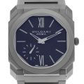 - ラテン語で8を意味する「オクト」は、モデル名の通り個性的な8角形のケースフォルムが特徴的なコレクションです。大ぶりなケースとオクタゴンのブルーダイアル。どこをとっても従来のメンズウォッチとは一線を画す、独自のデザインに仕上がっています。またこちらは2017年に当時世界最薄の自動巻き腕時計として誕生した「オクト フィニッシモ オートマティック」をベースとした日本限定モデルです。2021年開催のオンリーウォッチのために制作されたユニークピースを思わせる「ミッドナイトブルー」と、ほかのモデルには存在しない2段レター、12時と6時のローマインデックスが特別なデザインとなっています。