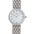 - 素材にホワイトゴールドを使用し、ベゼルにダイヤモンドをセッティングしたゴージャスなモデルです。文字盤をシンプルな構成に抑えたことで、ジュエリーとしての存在感をより引立てています。