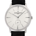 - パトリモニーは現在製造されているコレクションの中で、最もオーソドックスでクラシカルなシリーズです創業から255年もの間絶え間なく続く、ヴァシュロンの歴史の真髄を味わえる逸品です。洗練されたこの18Kホワイトゴールド製の時計は、約3日間のパワーリザーブを誇る手巻きムーブメントを備えています。