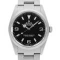 - 「探検家」と名付けられた"エクスプローラーI"。ロレックスのスポーツモデルの中でもシンプルで飽きのこないデザインが特徴で、服装や時と場所を選ばず、どの場面でも活躍できる定番人気のモデルです。市場での数も豊富に流通しておりますので、ロレックスのエントリーモデルとしても打って付けです。前モデルの14270と本モデルの114270は、針の太さやデザインなど同一であるため、視覚的な違いはほとんどありません。モデルが切り替わった2000年は、ロレックスのムーブメント製造技術が一気に向上した時期と言われ、それに伴い内部の機械がワンランク上のスペックに改良。Cal.3130 テンプ受けがシングルからダブルブリッジになったことで耐久性が大きく向上しました。