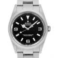 - 「探検家」と名付けられた"エクスプローラーI"。ロレックスのスポーツモデルの中でもシンプルで飽きのこないデザインが特徴で、服装や時と場所を選ばず、どの場面でも活躍できる定番人気のモデルです。市場での数も豊富に流通しておりますので、ロレックスのエントリーモデルとしても打って付けです。前モデルの14270と本モデルの114270は、針の太さやデザインなど同一であるため、視覚的な違いはほとんどありません。モデルが切り替わった2000年は、ロレックスのムーブメント製造技術が一気に向上した時期と言われ、それに伴い内部の機械がワンランク上のスペックに改良。Cal.3130 テンプ受けがシングルからダブルブリッジになったことで耐久性が大きく向上しました。