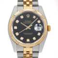 - 1945年に誕生し、今やレディースロレックスの顔とも言えるデイトジャストは、金属塊から削り出した防水性の高い「オイスターケース」、午前0時頃瞬時に日付けが変わる「デイトジャスト機構」、全回転式ローターを搭載した「パーペチュアル機構」と、ロレックス三大機構を搭載したモデルです。ベゼルには細かい山が装飾されたロレックス伝統のフルーテッドベゼルを採用しています。