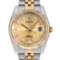 - 1945年に誕生し、今やレディースロレックスの顔とも言えるデイトジャストは、金属塊から削り出した防水性の高い「オイスターケース」、午前0時頃瞬時に日付けが変わる「デイトジャスト機構」、全回転式ローターを搭載した「パーペチュアル機構」と、ロレックス三大機構を搭載したモデルです。ベゼルには細かい山が装飾されたロレックス伝統のフルーテッドベゼルを採用しています。