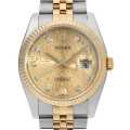 - 1945年に誕生し、今やレディースロレックスの顔とも言えるデイトジャストは、金属塊から削り出した防水性の高い「オイスターケース」、午前0時頃瞬時に日付けが変わる「デイトジャスト機構」、全回転式ローターを搭載した「パーペチュアル機構」と、ロレックス三大機構を搭載したモデルです。ベゼルには細かい山が装飾されたロレックス伝統のフルーテッドベゼルを採用しています。