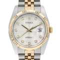 - 1945年に誕生し、今やレディースロレックスの顔とも言えるデイトジャストは、金属塊から削り出した防水性の高い「オイスターケース」、午前0時頃瞬時に日付けが変わる「デイトジャスト機構」、全回転式ローターを搭載した「パーペチュアル機構」と、ロレックス三大機構を搭載したモデルです。ベゼルには細かい山が装飾されたロレックス伝統のフルーテッドベゼルを採用しています。「ROLEX」の文字をコンピューター基盤のようにダイアルに刻んだ特徴的なデザインが印象的で、さらにはその上に10ポイントのダイヤモンドを配し、高級感溢れる華やかなデザインに仕上がっています。