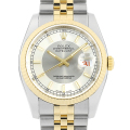 - 1945年にリリースされ、今やロレックスの顔とも言えるデイトジャストは、金属塊から削りだした防水性の高いオイスターケース、午前0時頃瞬時に日付けが変わるデイトジャスト機構、全回転式ローターを搭載したパーペチュアル機構と、ロレックス三大機構を搭載したモデルです。シルバーとグレーの文字盤と繊細なフルーテッドベゼルが高級感あふれるデザインに仕上がっています。