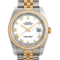 - 1945年にリリースされ、今やロレックスの顔とも言える「デイトジャスト」。金属塊から削りだした防水性の高いオイスターケース、午前0時頃瞬時に日付けが変わるデイトジャスト機構、全回転式ローターを搭載したパーペチュアル機構と、ロレックス三大機構を搭載したモデルです。こちらのモデルはベゼルにダイヤモンドをセッティングした、高級感あふれる華やかなデザインに仕上がっています。