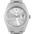 - 2009年発表の「デイトジャストII」が入荷いたしました。36mmから41mmにサイズアップされたケースや、幅が広くなった18金ホワイトゴールド製のフルーテッドベゼル、視認性が大きく向上した新しいデザインの文字盤など、従来のモデルに比べ様々な点が変更になりました。ムーブメントには磁力の影響を受けにくいパラクロム製ヒゲゼンマイを採用したCal.3136を搭載しています。