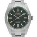 - ヴィンテージ ロレックスの中でも高い人気を誇るミルガウス。1970年代に生産を終了してから約30年の歳月が経過した2007年に発表されたモデルで、1stモデルで採用されていたイナズマ型の秒針と、2ndモデルのケースが融合されたデザインです。コーポレートカラーであるグリーンに染められたサファイアガラスが印象的。マットブラックのダイアルに配されたバーインデックスとオレンジのイナズマ針が、モダンでポップな印象を与えています。