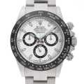 - 2016年のバーゼルワールドで発表されたデイトナ Ref.116500LNです。ベゼルがステンレスからセラクロムへ変更されたことにより、耐蝕性と耐傷性に優れ紫外線による影響を受けにくいという進化を遂げました。ムーブメントはパワーリザーブ約72時間のCal.4130を搭載。防水性100m仕様。ダイアルはブラックとホワイトの2色展開となりますが、どちらも甲乙つけがたい精悍さが際立つ大人気モデルです。