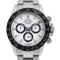 - 2016年のバーゼルワールドで発表されたデイトナ Ref.116500LNです。ベゼルがステンレスからセラクロムへ変更されたことにより、耐蝕性と耐傷性に優れ紫外線による影響を受けにくいという進化を遂げました。ムーブメントはパワーリザーブ約72時間のCal.4130を搭載。防水性100m仕様。ダイアルはブラックとホワイトの2色展開となりますが、どちらも甲乙つけがたい精悍さが際立つ大人気モデルです。