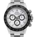 - 2016年のバーゼルワールドで発表されたデイトナ Ref.116500LNです。ベゼルがステンレスからセラクロムへ変更されたことにより、耐蝕性と耐傷性に優れ紫外線による影響を受けにくいという進化を遂げました。ムーブメントはパワーリザーブ約72時間のCal.4130を搭載。防水性100m仕様。ダイアルはブラックとホワイトの2色展開となりますが、どちらも甲乙つけがたい精悍さが際立つ大人気モデルです。