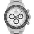 - 2016年のバーゼルワールドで発表されたデイトナ Ref.116500LNです。ベゼルがステンレスからセラクロムへ変更されたことにより、耐蝕性と耐傷性に優れ紫外線による影響を受けにくいという進化を遂げました。ムーブメントはパワーリザーブ約72時間のCal.4130を搭載。防水性100m仕様。ダイアルはブラックとホワイトの2色展開となりますが、どちらも甲乙つけがたい精悍さが際立つ大人気モデルです。