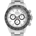 - 2016年のバーゼルワールドで発表されたデイトナ Ref.116500LNです。ベゼルがステンレスからセラクロムへ変更されたことにより、耐蝕性と耐傷性に優れ紫外線による影響を受けにくいという進化を遂げました。ムーブメントはパワーリザーブ約72時間のCal.4130を搭載。防水性100m仕様。ダイアルはブラックとホワイトの2色展開となりますが、どちらも甲乙つけがたい精悍さが際立つ大人気モデルです。