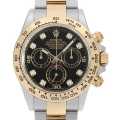 - 2016年発表のデイトナRef.116503です。従来のRef.116523とほぼ同様のスペックですが、ベゼルの目盛部分が変更されています。大きな仕様変更はありませんので、マイナーチェンジの位置付けでしょうか。こちらはダイアルに8個のダイヤモンドが配され、イエローゴールド素材と相まって華やかなモデルです。