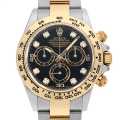 - 2016年発表のデイトナRef.116503です。従来のRef.116523とほぼ同様のスペックですが、ベゼルの目盛部分が変更されています。大きな仕様変更はありませんので、マイナーチェンジの位置付けでしょうか。こちらはダイアルに8個のダイヤモンドが配され、イエローゴールド素材と相まって華やかなモデルです。