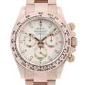 - 腕時計を代表する傑作とも言えるコスモグラフ・デイトナ。細部に至るまで丁寧に仕上げられたケースには、従来のピンクゴールドに微量のプラチナが入ったエバーローズゴールドを使用しており、輝きの衰えない上品で鮮やかな色味が魅力です。プッシュボタンで操作可能な秒・分・時のクロノグラフや、タキメーターとして機能する目盛り付きベゼルを備えており機能性も抜群です。