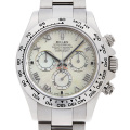 - ロレックス スポーツモデルの最上位機種であり、最人気機種のコスモグラフ デイトナ。1959年に誕生しましたが、24時間耐久カーレースで有名な「デイトナ・インターナショナル・スピードウェイ」の名にちなんで命名されました。こちらは、ケース、ブレスレットともにホワイトゴールドを使用しており、腕に装着した時にずっしりとくる重量感が魅力です。文字盤には艶やかなブラックシェルが採用され、ミステリアスかつラグジュアリーなモデルです。