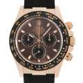 - バーゼルワールド2011で発表された116515LN。数々の時計雑誌の表紙を飾っていたモデルになるので、目にしたことがある人も多いのではないでしょうか。K18エバーローズゴールド製のケースに、モノブロック(一体構造)のブラックセラクロムベゼルを採用。上質なセラミックを使用することで耐蝕性、耐傷性に優れ、色褪せを防ぐことに成功しています。また、ベゼルの目盛りにピンクゴールドの微粒子層を蒸着し、PVD加工することで高い視認性を実現しました。