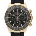 - クロノグラフウォッチの代名詞とも呼ばれ、世界的に名の知れたロレックスの"コスモグラフ デイトナ"。イエローゴールド製のケースに、モノブロック(一体構造)のブラックセラクロムベゼルを採用。上質なセラミックを使用することで耐蝕性、耐傷性に優れ、色褪せを防ぐことに成功しています。また、ベゼルの目盛りにゴールドの微粒子層を蒸着し、PVD加工することで高い視認性をも実現しています。自社製自動巻きムーブメントCal.4130搭載、パワーリザーブ約72時間。こちらは2017年発表のモデルです。