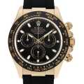 - クロノグラフウォッチの代名詞とも呼ばれ、世界的に名の知れたロレックスの"コスモグラフ デイトナ"。イエローゴールド製のケースに、モノブロック(一体構造)のブラックセラクロムベゼルを採用。上質なセラミックを使用することで耐蝕性、耐傷性に優れ、色褪せを防ぐことに成功しています。また、ベゼルの目盛りにゴールドの微粒子層を蒸着し、PVD加工することで高い視認性をも実現しています。自社製自動巻きムーブメントCal.4130搭載、パワーリザーブ約72時間。こちらは2017年発表のモデルです。