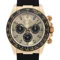 - クロノグラフウォッチの代名詞とも呼ばれ、世界的に名の知れたロレックスのコスモグラフ デイトナ。18金イエローゴールド製のケースに、モノブロック(一体構造)のブラックセラクロムベゼルを採用。上質なセラミックを使用することで耐蝕性、耐傷性に優れ、色褪せを防ぐことに成功しています。また、ベゼルの目盛りにゴールドの微粒子層を蒸着し、PVD加工することで高い視認性をも実現しています。ゴージャスなシャンパンダイアルが備わっており、特別な一本をお探しの方にお薦めしたいモデルです。自社製自動巻きムーブメントCal.4130搭載、パワーリザーブ約72時間。100m防水。2017年発表。