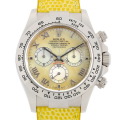 - ロレックスはもとより腕時計を代表する傑作「コスモグラフ デイトナ」。中でもデイトナ ビーチは、今やそのアイデンティティと希少性から、特別な存在感を誇ると言って良い一本です。デイトナ ビーチはコスモグラフ デイトナの名前の由来となったデイトナ・インターナショナル・スピードウェイや、付近には航空大学、国際空港等が位置する地ですが、この有名な地の雰囲気が見事落とし込まれているように感じます。こちらはエレガントなイエローシェル文字盤ということもあり、お探しの方も多いのではないでしょうか。