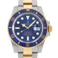 - 今なお、ダイバーズウォッチの王者として君臨し続ける大人気モデル"サブマリーナ"。海をイメージさせるブルーを基調とした爽快な色使いは「青サブ」と呼ばれ、夏を愛する人にぴったりのモデルです。こちらは2009年に発表されたイエローゴールドとのコンビモデルで、新設計のケースやブレスレットはそのままに、高級感と質感が大きく向上しました。ムーブメントにはCal.3135クロノメーターを搭載し、オイスターケースやトリプロックリューズにより300mの防水性を実現しています。
